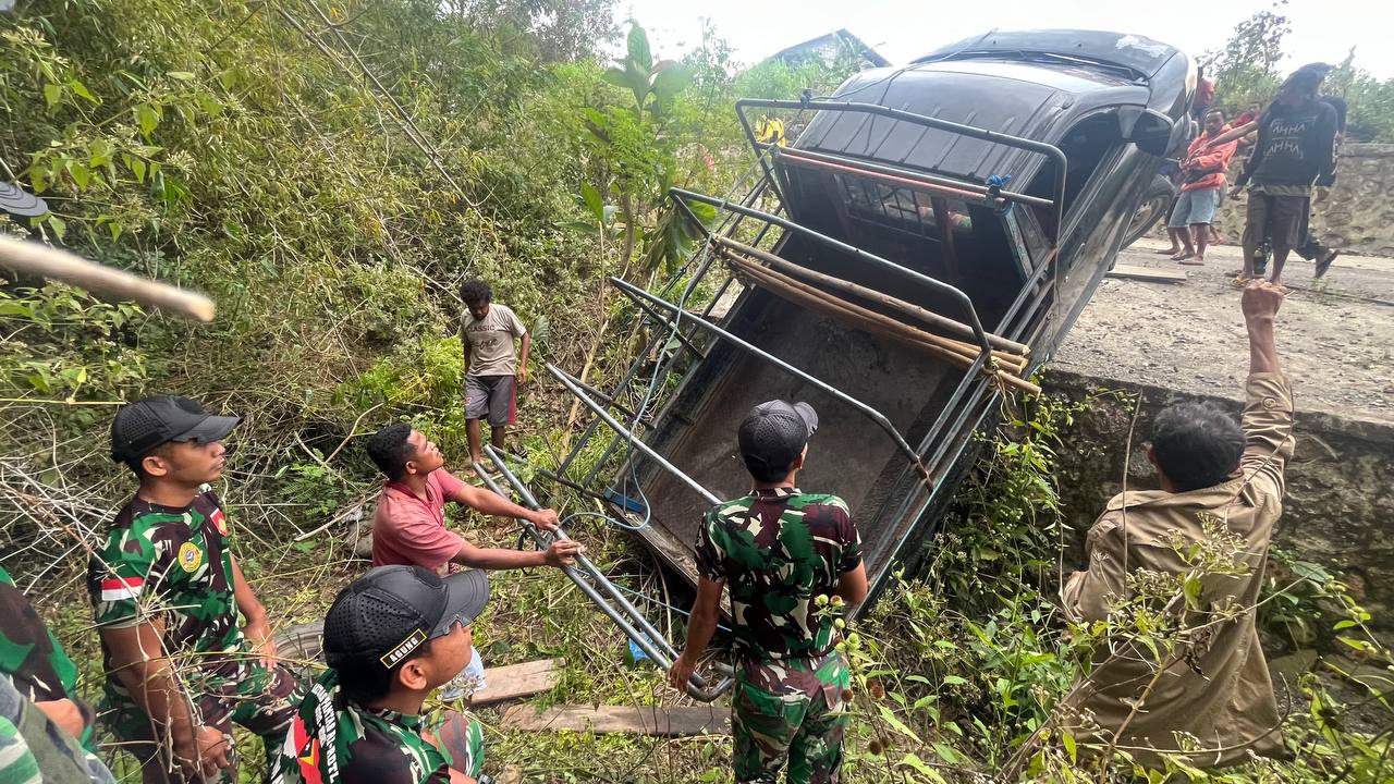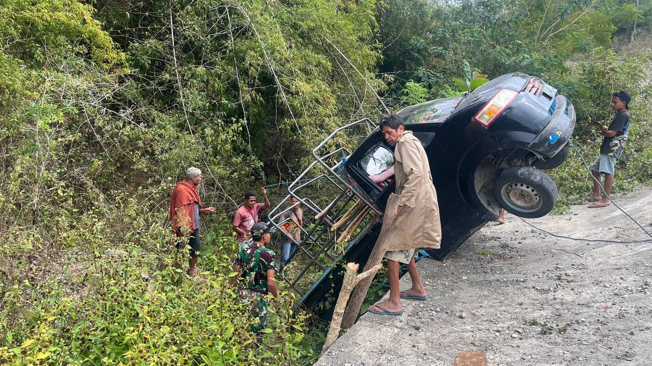 Klivetvindonesia.com-Kefamenanu, 3 Juli 2025 – Sebanyak 12 personel dari Pos Nelu, yang dipimpin oleh Wadanpos Sertu Dikmanto, melaksanakan kegiatan evakuasi kendaraan roda empat milik Bapak Andik Kase (41), warga Oesoko, Kecamatan Wini, yang mengalami kecelakaan akibat rem blong di Dusun Nelu RT 11/RW 06, Desa Sunsea, Kecamatan Naibenu, Kabupaten Timor Tengah Utara.