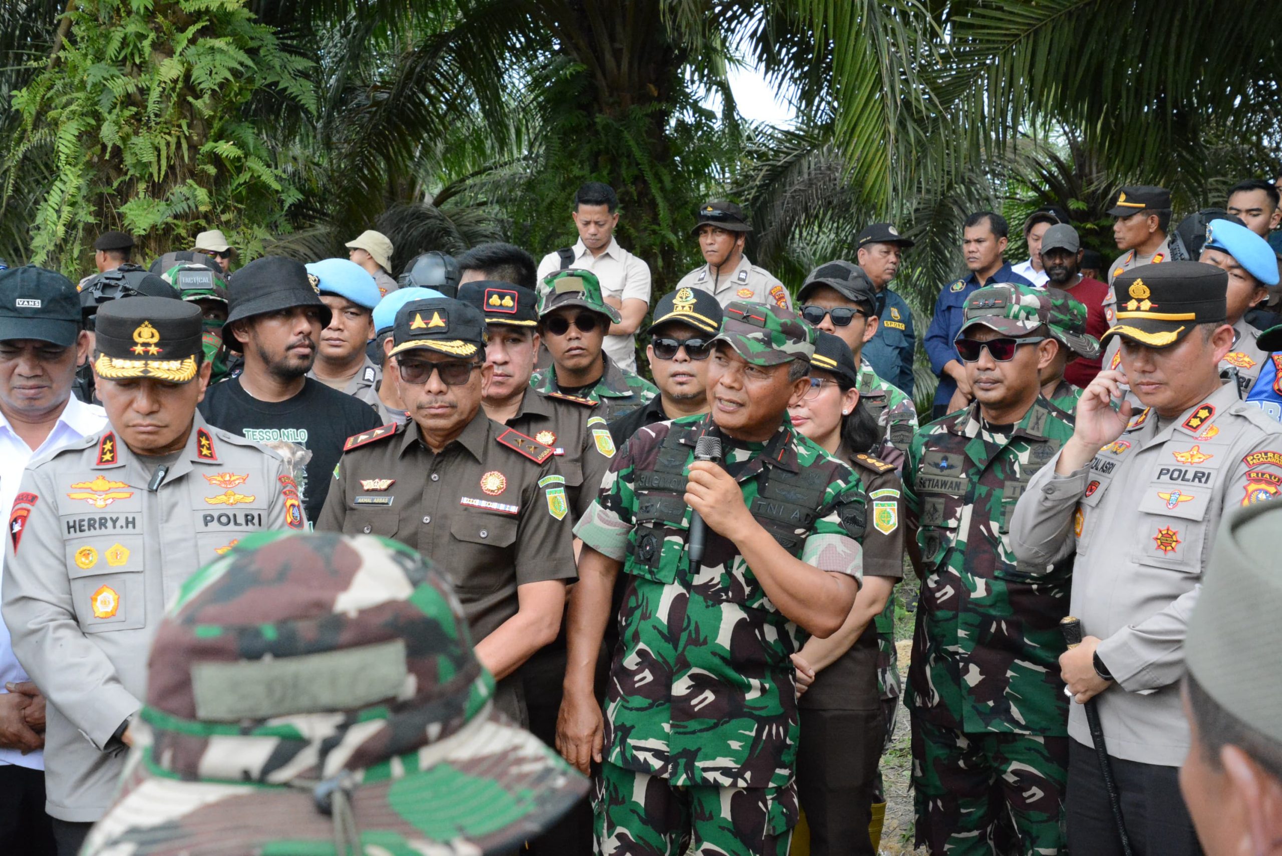 Danrem 031/WB didampingi oleh Kasi Intel Kasrem 031/WB, Letkol Cpn Fransiskus Hendra Gunawan dan Dantim Intel Korem 031/WB Mayor Kav Christopher Leonard Bessie, serta melibatkan sinergi lintas sektor mulai dari Balai TN. Tesso Nilo, aparat penegak hukum, pemerintah daerah, hingga unsur masyarakat peduli lingkungan menunjukkan komitmen nyata dalam menyelamatkan kawasan konservasi yang selama ini terancam akibat alih fungsi lahan secara ilegal.