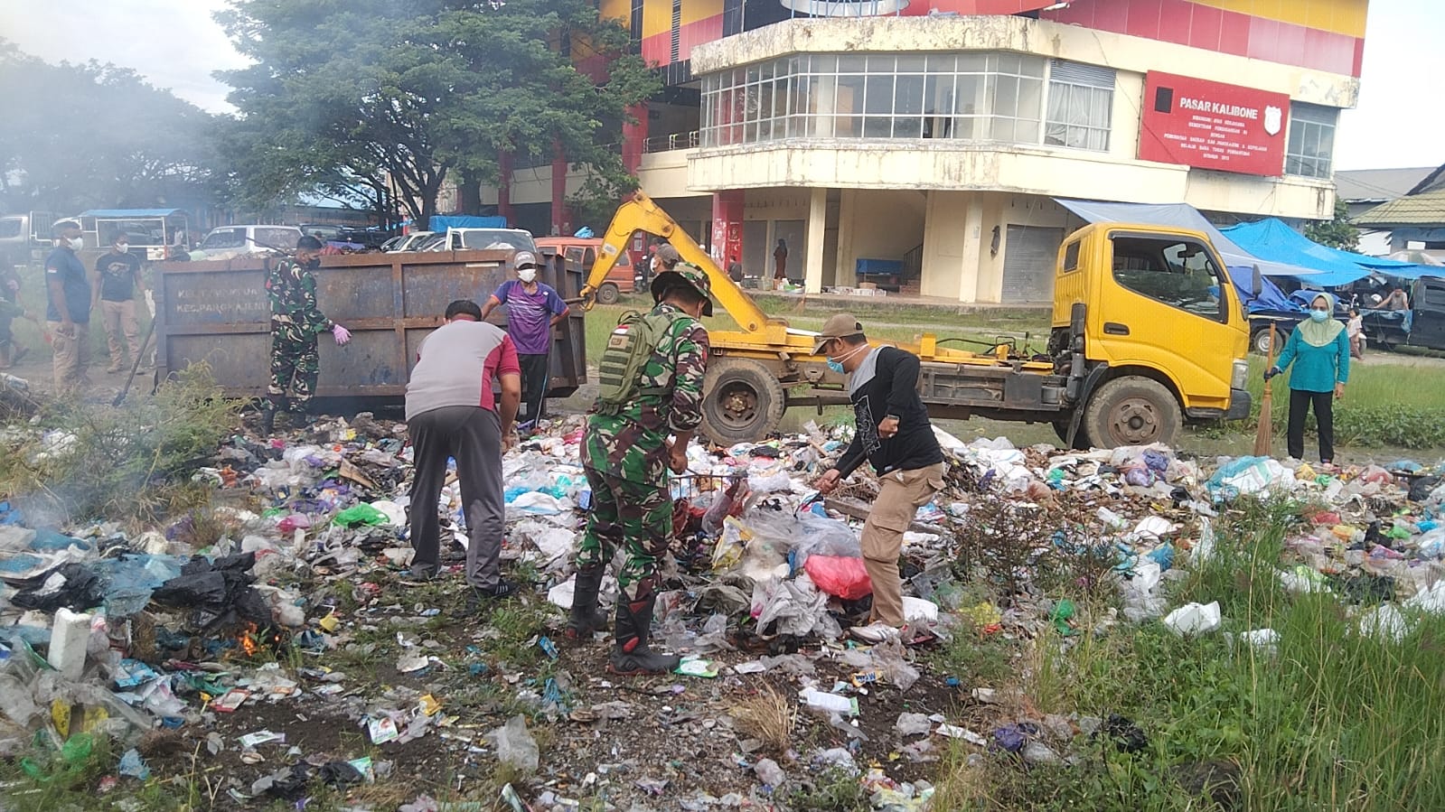 Giat tersebut diinisiasi oleh Koramil 02 Minasatene dimana turut hadir pak Danrami beserta Anggotanya, Staf Kelurahan Bonto Langkasa, RT/RW Se Kel. Bonto Langkasa Serta Warga Kp. Kalibone. Dimana giat tersebut untuk membersihkan sampa hv yang berserakan di sekitar pasar dan sudah menggangu pemandangan dan serta sudah menimbulkan bau yang tdk sedap.