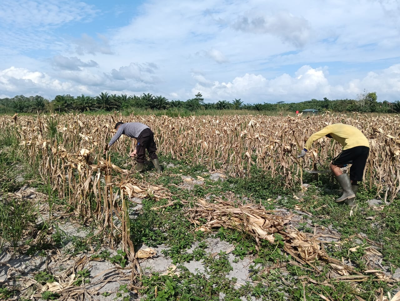 Kegiatan ini merupakan bagian dari proses pasca panen yang dilakukan oleh kelompok tani guna mempersiapkan lahan untuk penanaman ulang. Pengelolaan ulang dilakukan dengan metode pembersihan lahan melalui penebasan dan pembakaran sisa-sisa tanaman jagung yang telah dipanen.
