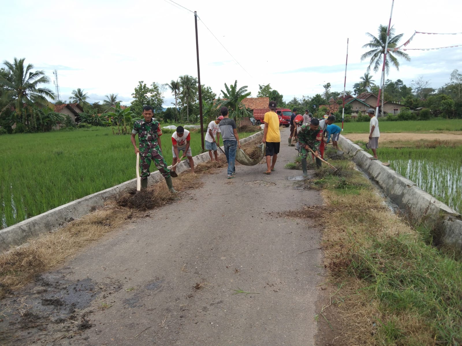Klivetvindonesia,com. Pesawaran-Babinsa Koramil 421-01/Kedondong bersama warga Desa Sindang Garut kecamatan Way Lima Kabupaten Pesawaran melakukan gotong royong membantu warga membersihkan parit dan badan jalan desa, Sabtu (5/07/2025)