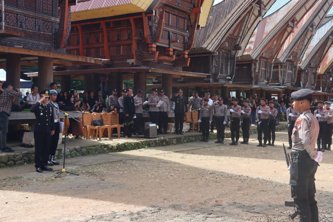 Upacara yang digelar dipimpin oleh Wakapolres Toraja Utara Kompol Marthen Muni, SH selaku inspektur upacara, dengan bertindak sebagai perwira upacara Kapolsek Sanggalangi’ AKP Settte Marrung, SH, dan Komandan Upacara Ka SPKT IPDA Alex Parinding.