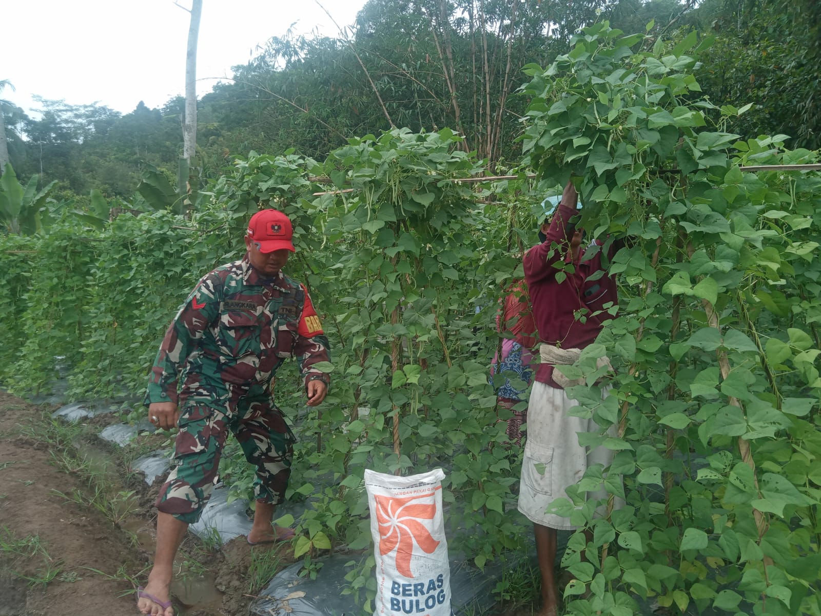 “Seperti saat ini kami terlibat langsung membantu pemetikan kacang panjang yang sudah memasuki masa panen. Dengan hadir nya kami di tengah-tengah masyarakat tentu akan menciptakan hubungan baik sehingga akan tercipta kemanunggalan TNI khusus nya AD melalui babinsa.”terangnya