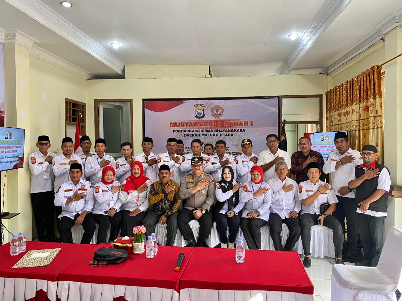 Turut hadir dalam kegiatan tersebut antara lain Kepala Badan Kesbangpol Provinsi Maluku Utara atau yang mewakili, Kepala Badan Kesbangpol Kota Ternate, Penasehat Pokdarkamtibmas Bhayangkara Daerah Maluku Utara Kombes Pol (Purn) Jafar Sadik, S.H., M.Si., Ketua-ketua Resor Kabupaten/Kota, serta jajaran pengurus dan panitia.