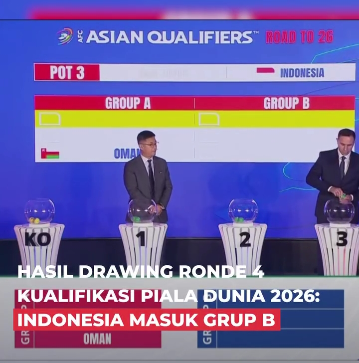 –klivetvindonesia.com– Seru di babak keempat kualifikasi Piala Dunia Zona Asia karena timnas Indonesia hasil Drawing di Kuala Lumpur , Malaysia Kamis 17 / 7 / 2025 masuk Grup B bersama dua kekuatan Asia yaitu Arab Saudi dan Irak yang merupakan tim langganan piala dunia dimana mereka akan bertarung habis- habisan merebut tiket kualifikasi tersebut sedangkan timnas Indonesia juga ambisi tiket itu jadi miliknya maka akan bertarung habis – habis juga untuk menuju piala Dunia 2026 di Amerika .