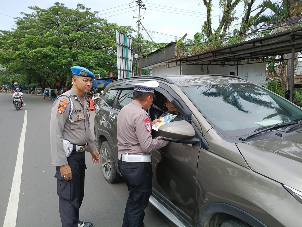Dalam kegiatan tersebut, personel Satlantas juga membagikan brosur imbauan dan stiker edukatif bertema keselamatan berkendara. Pengemudi yang kedapatan tidak mematuhi aturan diberikan teguran dan pembinaan secara humanis.