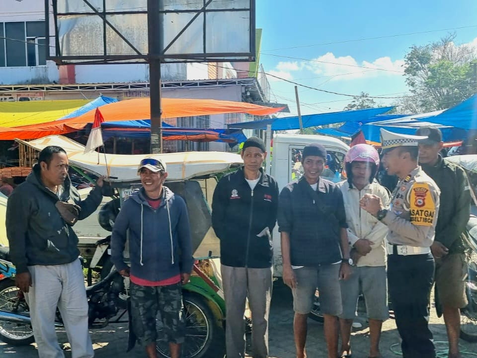 Petugas Satlantas tidak hanya memberikan himbauan dan edukasi kepada pengendara dan pengunjung pasar, namun juga melakukan teguran simpatik kepada pengendara yang tidak menggunakan helm SNI, memberikan penjelasan terkait penerapan sistem ETLE (Electronic Traffic Law Enforcement), serta melakukan pembagian brosur dan pemasangan spanduk imbauan keselamatan.