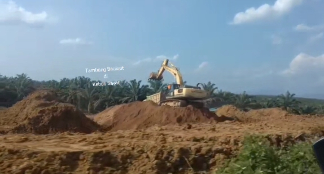 Saat tim Lumbung Informasi Masyarakat melintasi jalan Pak Mayam terlihat jelas kegiatan pertambangan bauksit diarea perkebunan sawit, terpantau jelas puluhan Dum truk roda 10 yang berseliweran bolak balik mengangkut Bauksit yang digali di area perkebunan kelapa sawit.