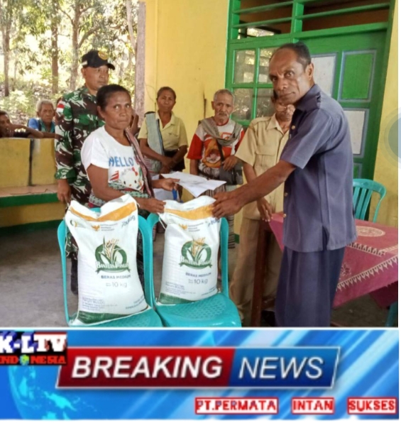 –klivetvindonesia.com– Naibenu, 24 Juli 2025 – Dua orang personel Pos Manamas, Sertu Padang Muwito dan rekan, melaksanakan kegiatan penyaluran beras Bulog di aula kantor Desa Manamas. Kegiatan ini bertujuan untuk membantu masyarakat yang mengalami kesulitan akibat gagal panen. (23/7).