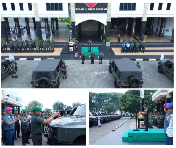 –klivetvindonesia.com– Medan, 25 Juli 2025 — Inspektur Daerah Militer (Irdam) I/Bukit Barisan, Brigjen TNI Josafath Robert M. Duka, S.I.P., mewakili Pangdam I/BB Mayjen TNI Rio Firdianto memimpin acara penyerahan kendaraan khusus (ransus) Jeep Maung Garuda kepada perwakilan satuan penerima di Track Lap Devile Makodam I/BB, Kamis (24/7/2025). Tiga penerima awal yang menerima secara simbolis adalah Danramil 04/Medan, Danramil 13/PST, dan Wadanyon Zipur 1/DD.