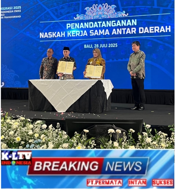 –klivetvindonesia.com— Pemerintah Kabupaten Sidenreng Rappang (Sidrap) dan Pemerintah Kabupaten Mojokerto menandatangani kesepakatan bersama tentang kerja sama pembangunan daerah dalam Rapat Kerja Nasional Transmigrasi Tahun 2025 yang digelar di Sunset Road Convention Center, Denpasar, Bali, Senin 28 Juli 2025