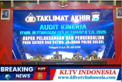 -KLTV INDONESIA.COM- Kapolda Sulawesi Selatan, Irjen Pol. Drs. Rusdi Hartono, M.Si., menghadiri kegiatan Taklimat Akhir dan Penutupan Audit Kinerja Itwasum Polri Tahap II T.A 2025 Aspek Pelaksanaan dan Pengendalian di Aula Mappaoddang, Mapolda Sulsel, Rabu (30/07/2025).