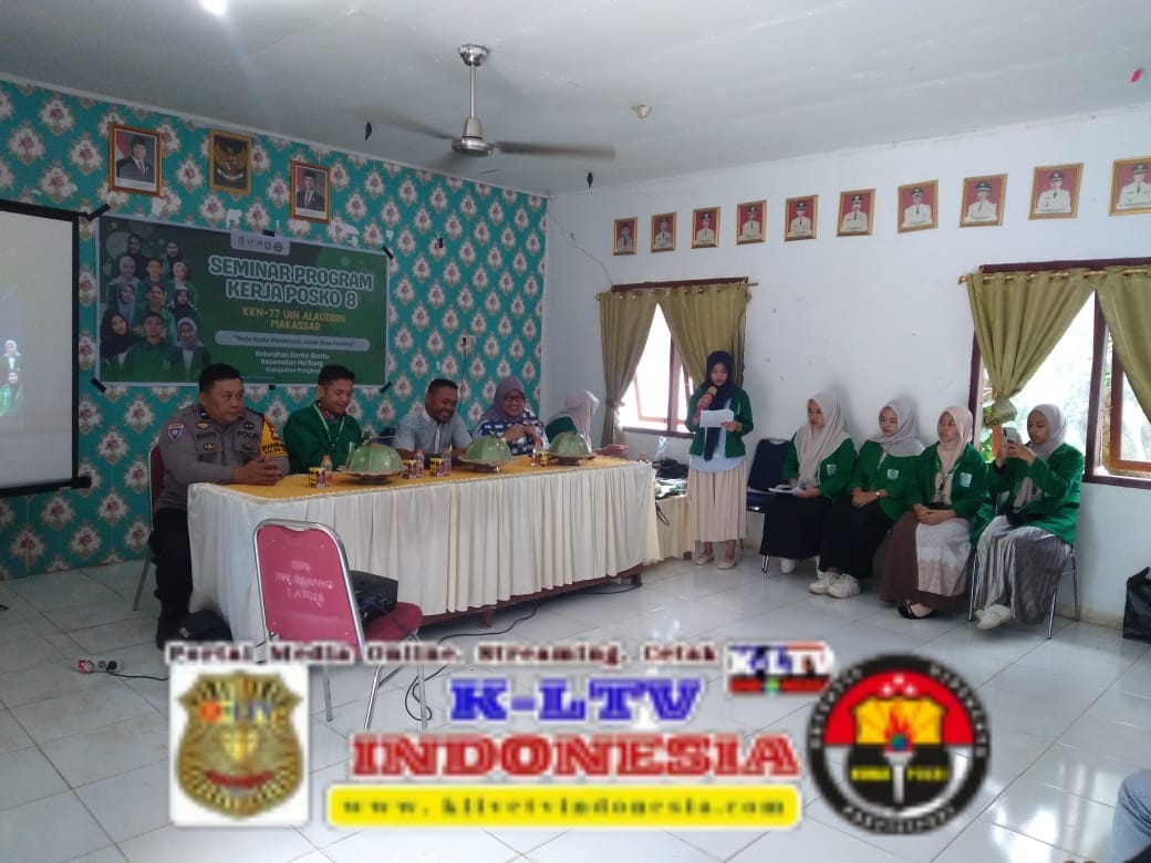 klivetvindonesia.com,Pangkep Ma’rang – Demi suksesnya kegiatan Kuliah Kerja Nyata (KKN) Mahasiswa Universitas Islam Negeri (UIN) Alauddin Makassar, Bhabinkamtibmas Kelurahan Bonto-Bonto Polsek Ma’rang, Aipda Wahyuddin, menghadiri seminar Program Kerja (Proker) KKN Angkatan 77 UIN Alauddin Makassar yang berlangsung di Aula Kantor Kelurahan Bonto-Bonto, Kecamatan Ma’rang, Kabupaten Pangkep, Jum’at (01/08/2025) siang.