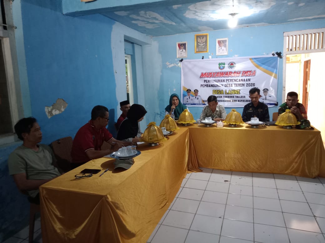 Rapat Musyawarah Desa (Musdes) ini dibuka oleh MC, dilanjutkan dengan sambutan dari Kepala Desa Lanne yang menyampaikan pentingnya peran aktif masyarakat dalam proses pembangunan desa, terutama dalam menyampaikan usulan yang sesuai dengan kebutuhan riil masyarakat. Sambutan berikutnya dari Camat Tondong Tallasa menekankan pentingnya sinergitas antara pemerintah desa, kecamatan, dan masyarakat agar pembangunan yang direncanakan berjalan tepat sasaran dan berkelanjutan.