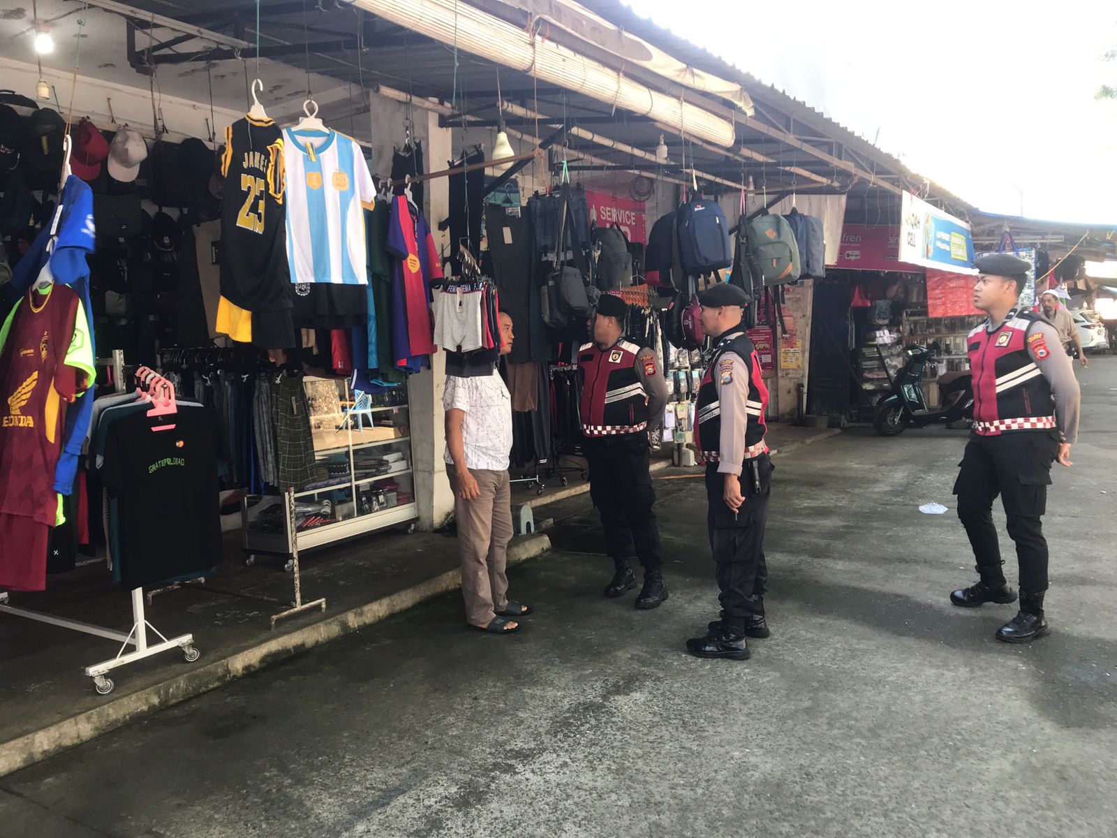 “Kegiatan patroli ini rutin kami laksanakan untuk menciptakan rasa aman, khususnya di tempat-tempat yang ramai dikunjungi masyarakat. Kehadiran personel di tengah aktivitas warga diharapkan mampu mencegah gangguan keamanan dan memberikan ketenangan bagi para pedagang maupun pengunjung,” ujarnya.