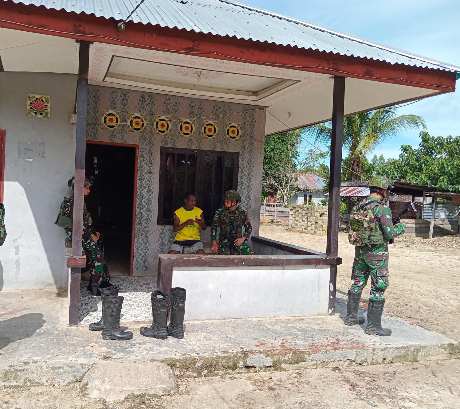 https://klivetvindonesia.com, Teluk Bintuni – Pos Jagiro Satgas Yonif 642/Kps melaksanakan kegiatan Komsos dengan Bapak Derek (Tomas) di Kampung Jagiro Kabupaten Teluk Bintuni, Papua Barat. (5/8/2025).