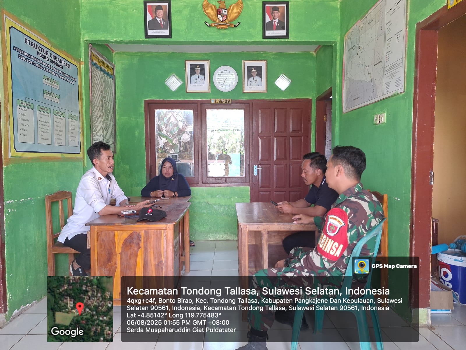 klivetvindonesia.com,PANGKEP – Upaya meningkatkan efektivitas pelaksanaan tugas pembinaan teritorial terus digalakkan oleh jajaran TNI Angkatan Darat, khususnya di tingkat Koramil. Salah satu wujud nyata dari komitmen tersebut ditunjukkan oleh Serda Muspaharuddin, Babinsa Desa Bonto Birao yang bertugas di wilayah Kecamatan Tondong Tallasa, Kabupaten Pangkep. Pada Rabu, 6 Agustus 2025, pukul 13.00 WITA, ia melaksanakan kegiatan Pengumpulan Data Teritorial (Puldatater) yang berlokasi di Kantor Desa Bonto Birao.