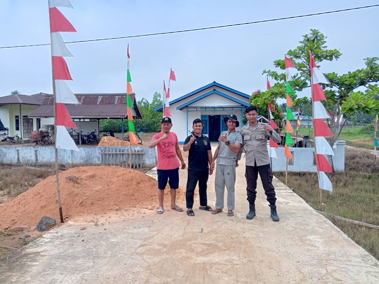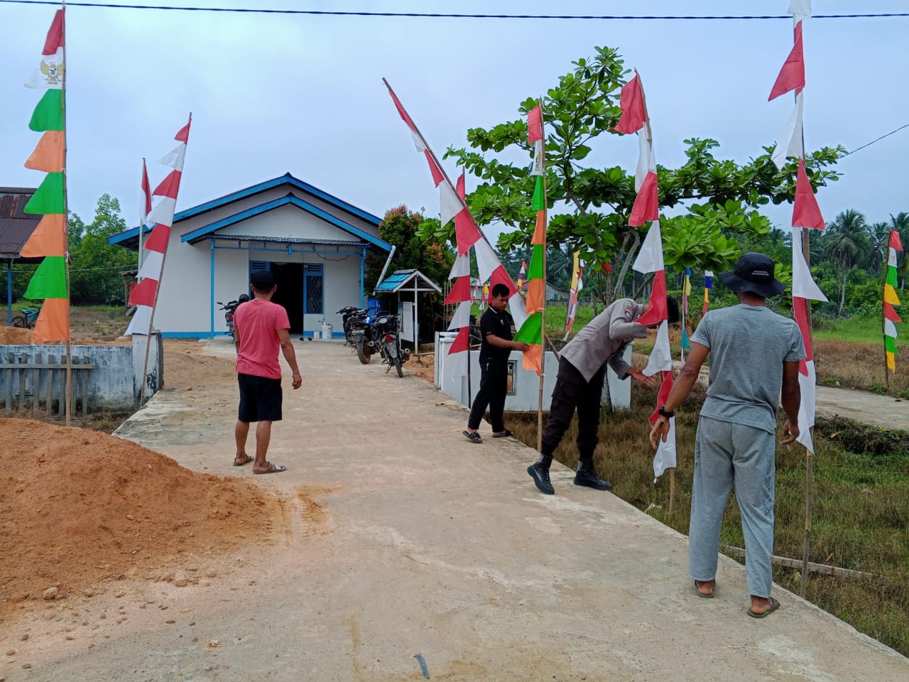 Bhabinkamtibmas Polsek Teluk Batang Bersama Warga Pasang Atribut Kemerdekaan RI ke-80 di Desa Banyu Abang