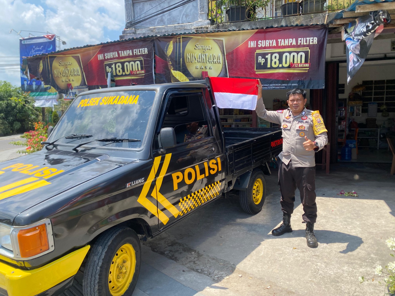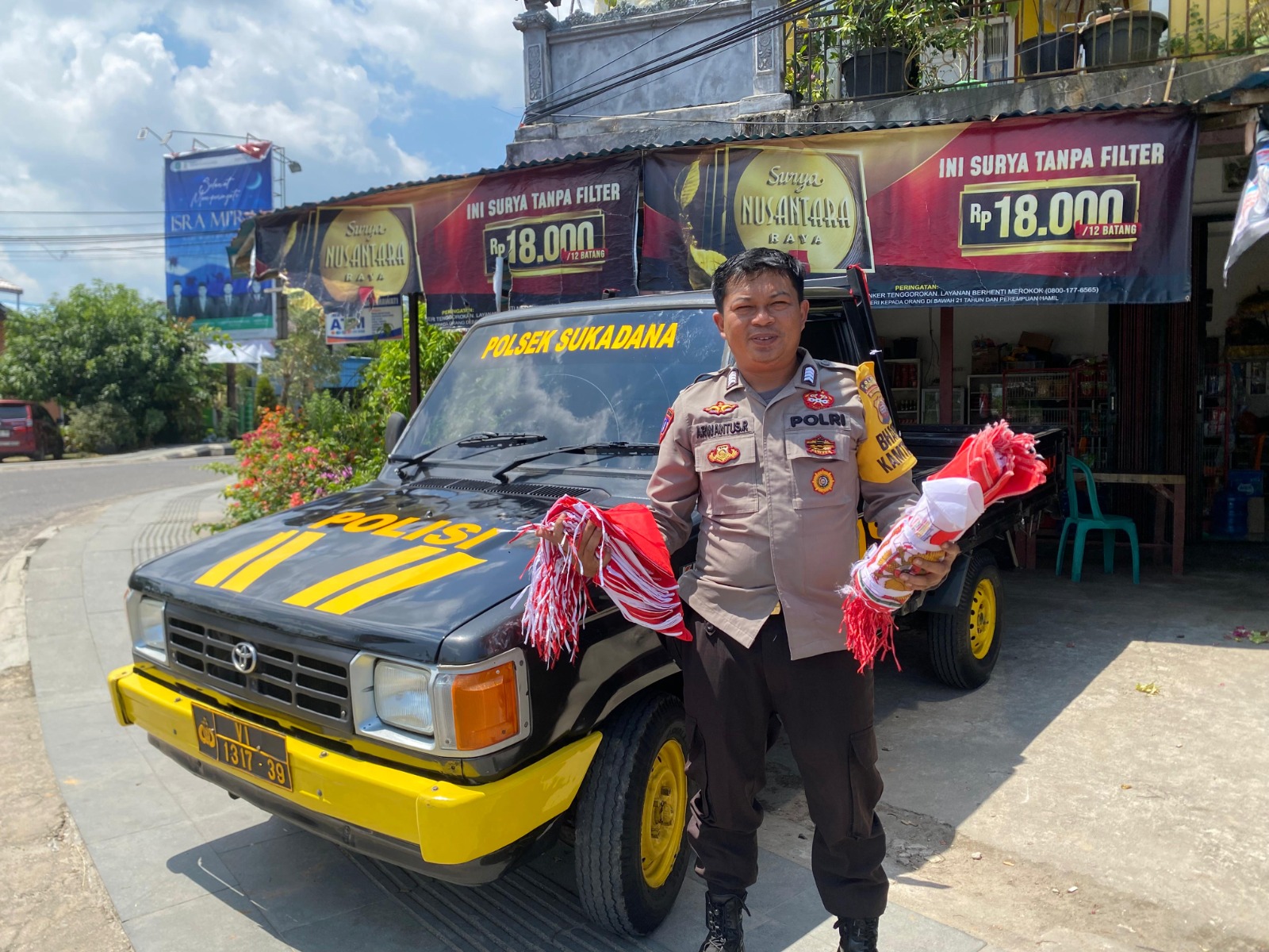 klivetvindonesia.com., Polres Kayong Utara, Polda Kalbar – Dalam rangka menyambut Hari Ulang Tahun ke-80 Kemerdekaan Republik Indonesia, Bripka Arwantus Riky, selaku Bhabinkamtibmas Polsek Sukadana, melaksanakan kegiatan pembagian bendera Merah Putih kepada para pengendara yang melintas di wilayah hukum Polsek Sukadana.
