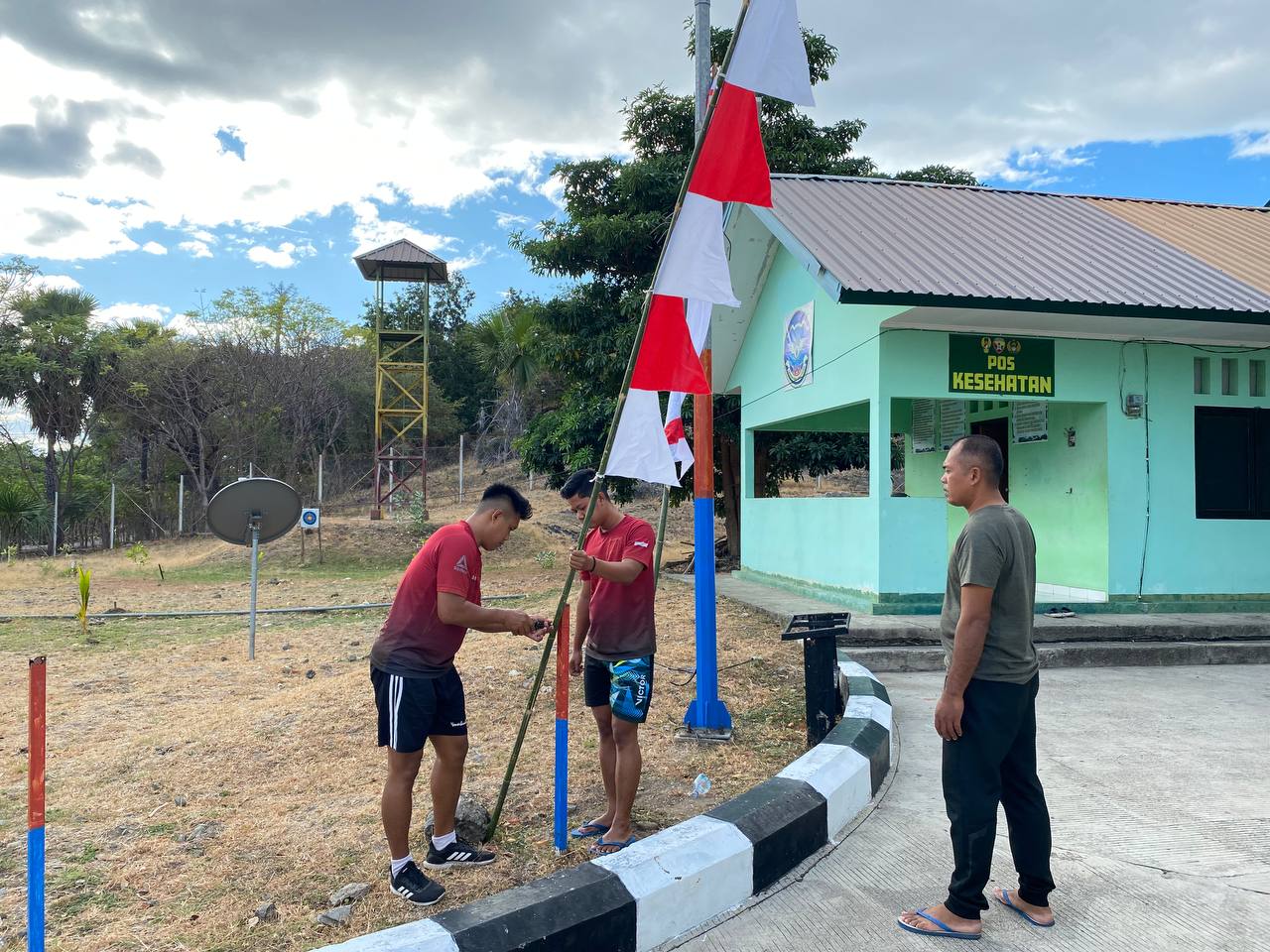 https://klivetvindonesia.com ,Pos Wini, 7 Agustus 2025 – Satgas Pamtas RI-RDTL Sektor Barat Yonarhanud 15/DBY, pada Selasa, 5 Agustus 2025, melaksanakan kegiatan di Pos Wini yang dipimpin oleh Serda Refaldi bersama dua anggota. Kegiatan ini mencakup pelatihan Peraturan Baris Berbaris (PBB) kepada pegawai setempat sebagai persiapan untuk perlombaan yang akan datang, sekaligus mendistribusikan Bendera Merah Putih.