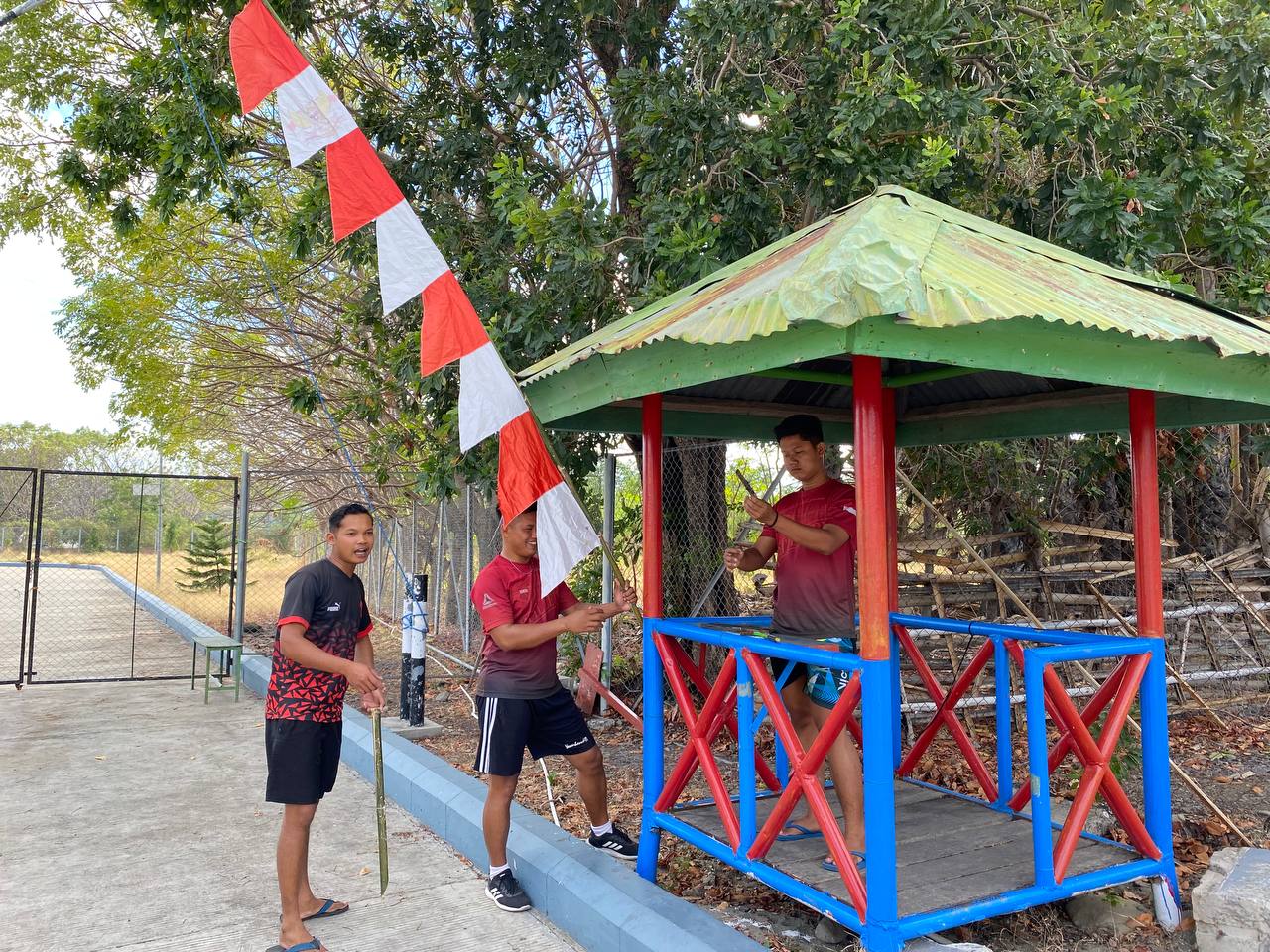 Pelatihan PBB dilaksanakan di halaman PLBN Kecamatan Insana Utara, dengan tujuan memeriahkan HUT RI ke-80. Setelah pelatihan, suasana semakin meriah ketika Serda Sumar dan seluruh pegawai PLBN secara serentak memasang umbul-umbul bendera dan ornamen kemerdekaan di sekitar Pos Wini. Dengan semangat kebersamaan yang tinggi, mereka bekerja bahu-membahu, menciptakan suasana yang penuh kegembiraan dan kebanggaan untuk menyambut hari bersejarah ini.