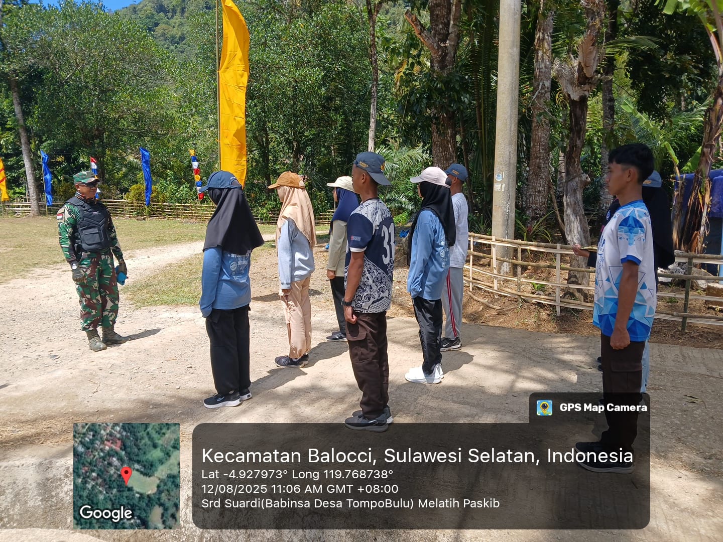 klivetvindonesia.com,PANGKEP – Dalam rangka menyambut dan memeriahkan Hari Ulang Tahun (HUT) ke-80 Kemerdekaan Republik Indonesia, Babinsa Desa Tompo Bulu, Serda Suardi, bersama guru SMAN 19 Pangkep, Achmad Ardianto, S.Pd., M.Pd., melaksanakan pelatihan Pasukan Pengibar Bendera (Paskibra) tingkat Desa Tompo Bulu.