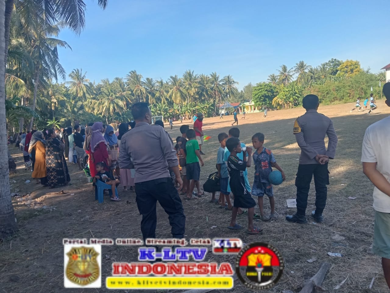klivetvindonesia.com,Liukang Tangaya – Dalam rangka memeriahkan Hari Ulang Tahun Republik Indonesia (HUT RI) ke-80, Ps. Kanit Bimmas Polsek Liukang Tangaya Aiptu Rudi Sunjaya bersama Bhabinkamtibmas Bripka Wahyu Hidayat melaksanakan pengamanan (PAM) pertandingan sepak bola antarwarga di lapangan sepak bola Pulau Sapuka, Kelurahan Sapuka, Rabu (13/8/2025).