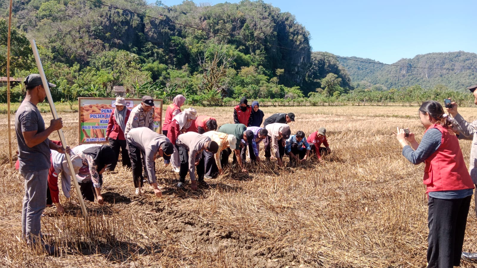 Penanaman perdana dilakukan secara simbolis oleh Ps. Kabag SDM Polres Pangkep H. Abd. Samad, SH., MM., didampingi PLT Kabid Ketahanan Pangan dan Holtikultura Muh. Sofyan, STP., M.Si., Kapolsek Balocci Iptu Agus Indra Jaya, SH., bersama seluruh Bhabinkamtibmas Polsek Balocci.