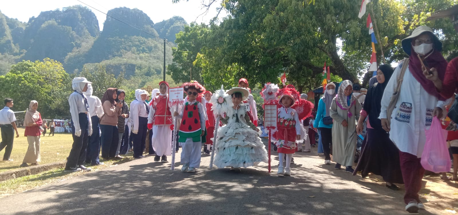 Peserta gerak jalan indah berasal dari berbagai sekolah mulai dari tingkat SD, SMP, hingga SMA se-Kecamatan Balocci.