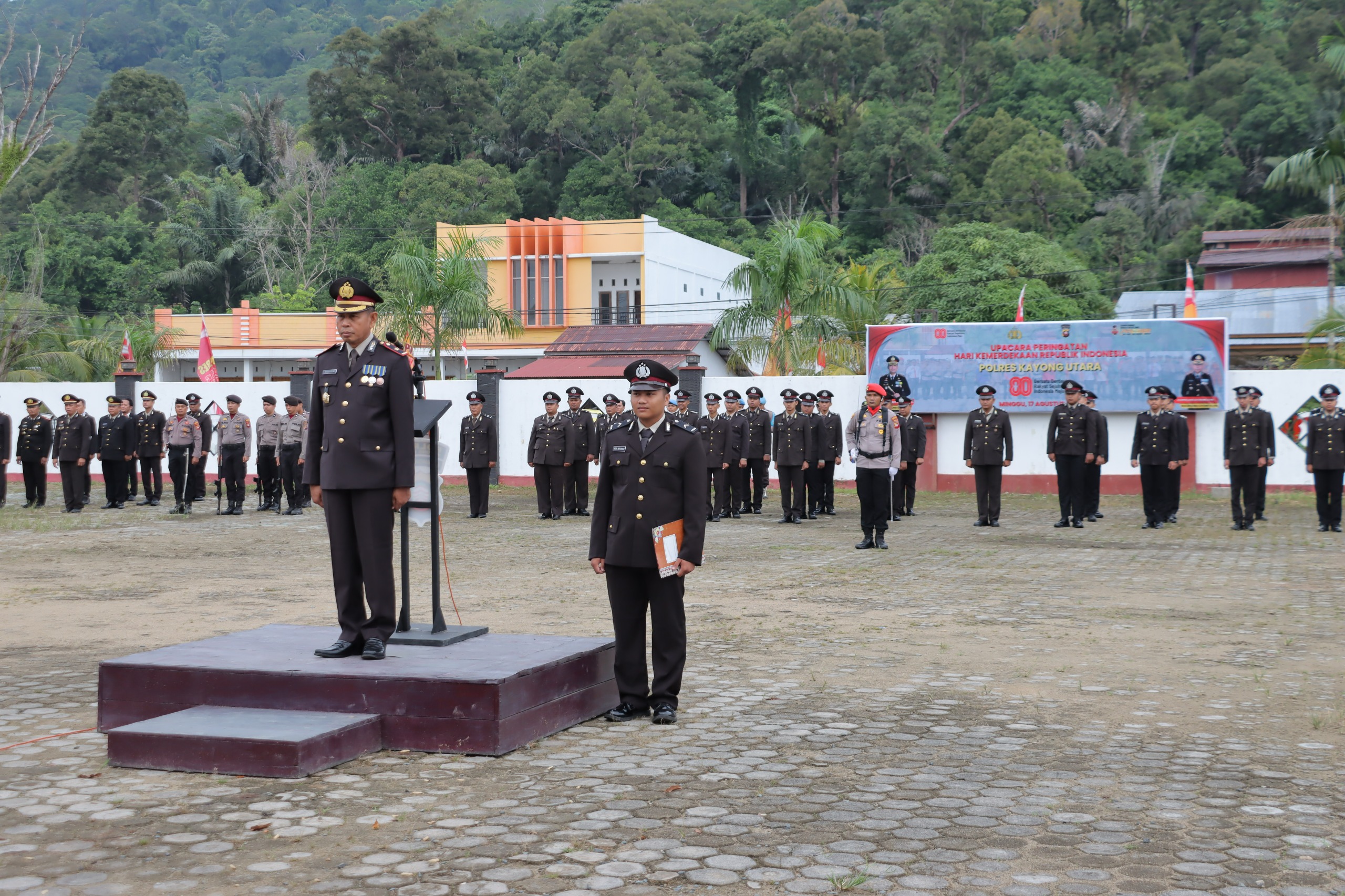 Wakil Kepala Polres Kayong Utara, Kompol Aris Sutrisno, S.Pd., bertindak sebagai Inspektur Upacara. Sementara itu, Kasat Intelkam AKP Sri Kusworo bertugas sebagai Perwira Upacara dan KBO Satreskrim, Ipda M. Iqbal, S.H., menjabat sebagai Komandan Upacara. Pembacaan naskah UUD 1945 dilakukan oleh Ps. Kasat Tahti, Aipda Eka Sukarno Putra, dan teks Proklamasi dibacakan oleh Ps. Kasat Reskrim, Iptu Hendra Gunawan, S.H.