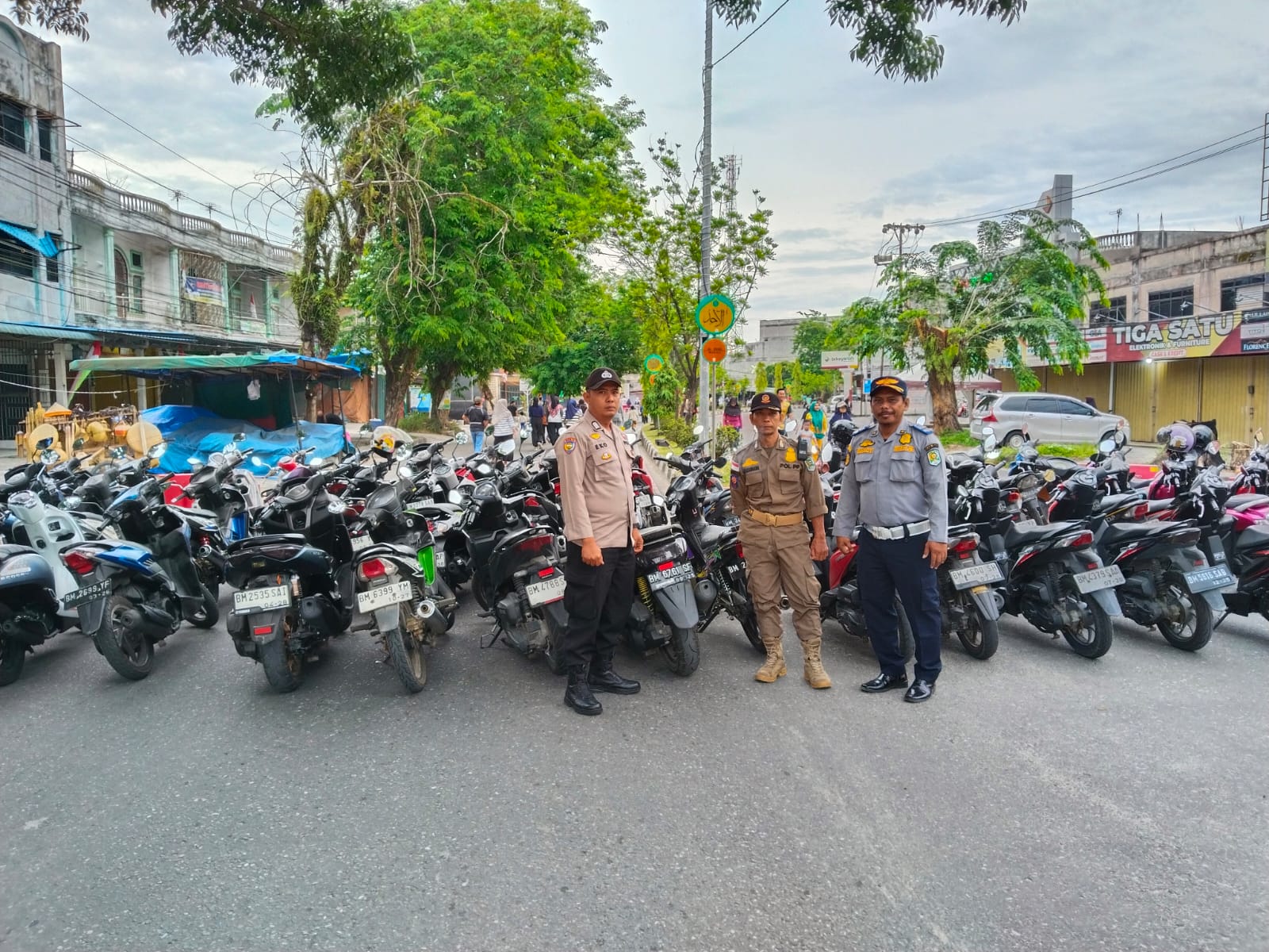 Dalam kegiatan tersebut pengamanan juga dibantu dari Dishub dan Sat Pol PP Kecamatan Tualang untuk pengamanan CFD di beberapa titik ucap Kapolsek.