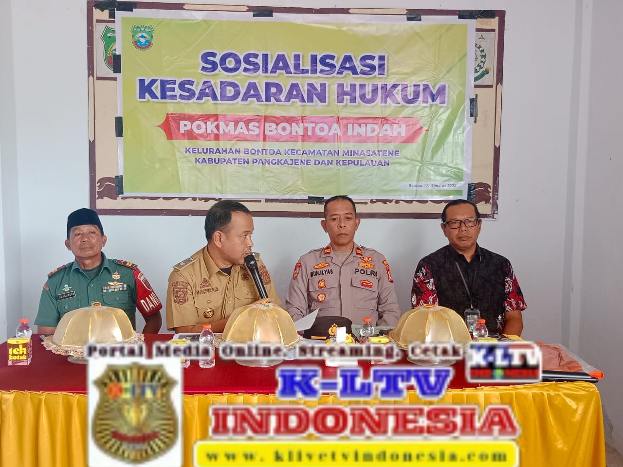 Sosialisasi ini juga dihadiri oleh Danramil Minasatene (H. Umar Abeto), Lurah Bontoa (Sacheam, SE), Babinsa Bontoa (Sertu Muh Ali, Bhabinkamtibmas Bontoa (Aipda Mujaemin Fattah), Staf kelurahan Bontoa serta RT / RW dan tokoh masyarakat Bontoa. Sosialiasasi kesadaran hukum ini di inisiasi oleh Pokmas Bontoa Indah, Kelurahan Bontoa, Kecamatan Minasatene.