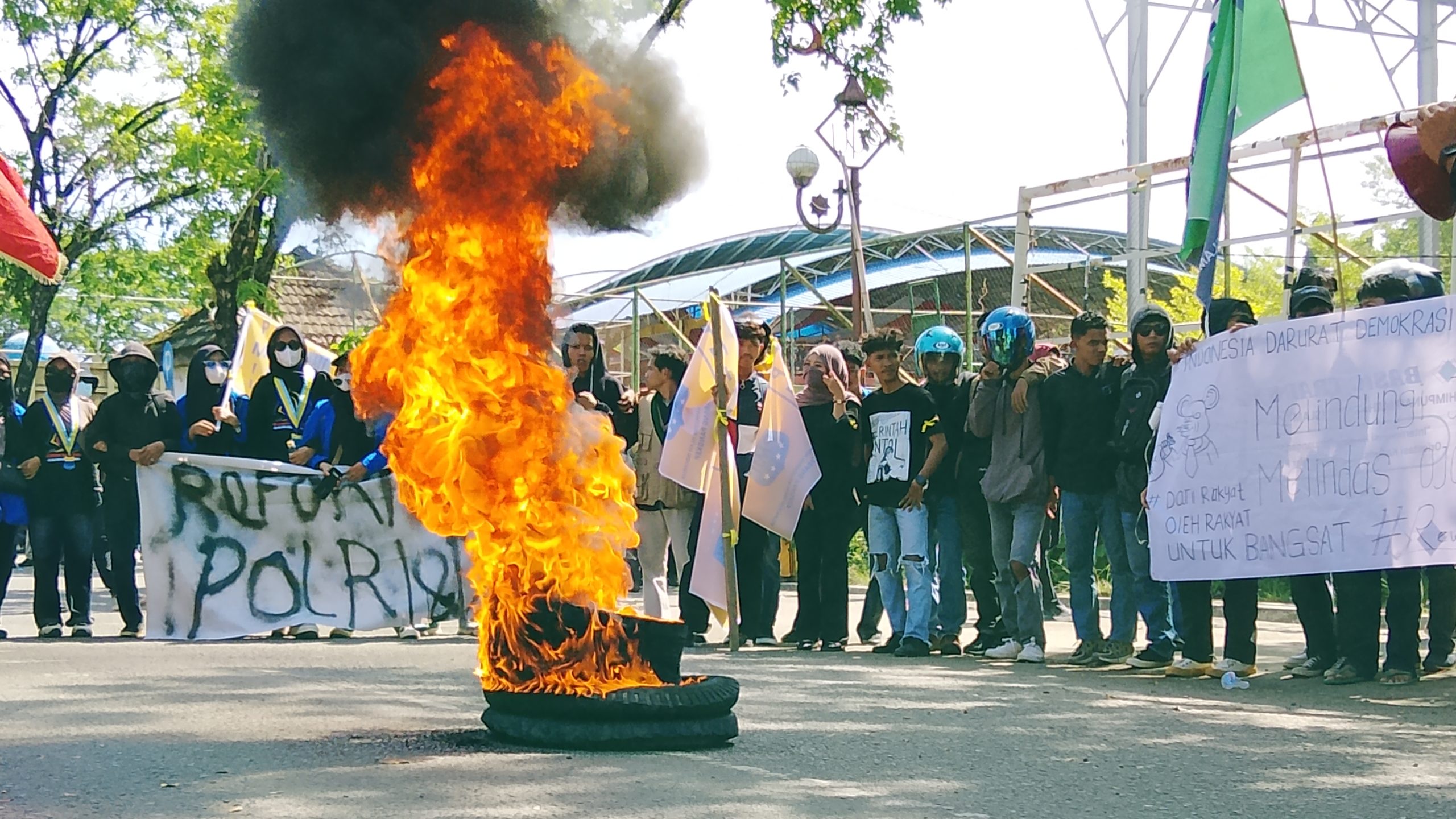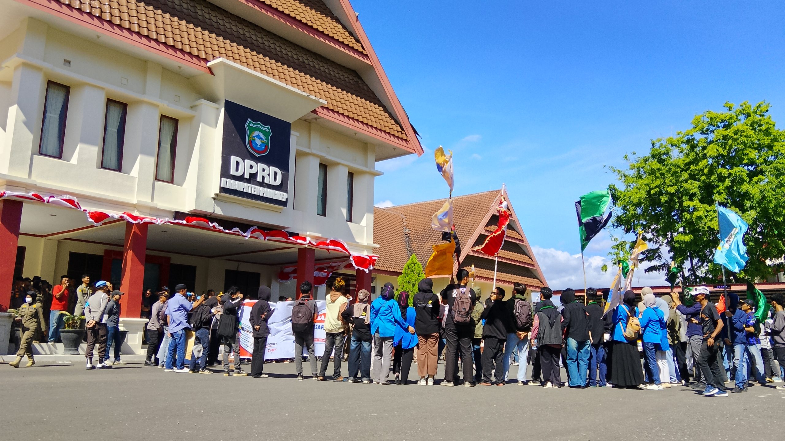 Massa aksi membawa atribut berupa bendera organisasi, spanduk tuntutan, dan pengeras suara. Dalam suasana tertib, Kapolres Pangkep bersama Ketua DPRD dan anggota dewan duduk bersama para mahasiswa di halaman Kantor DPRD saat orasi berlangsung, sebagai bentuk keterbukaan dalam menerima aspirasi.