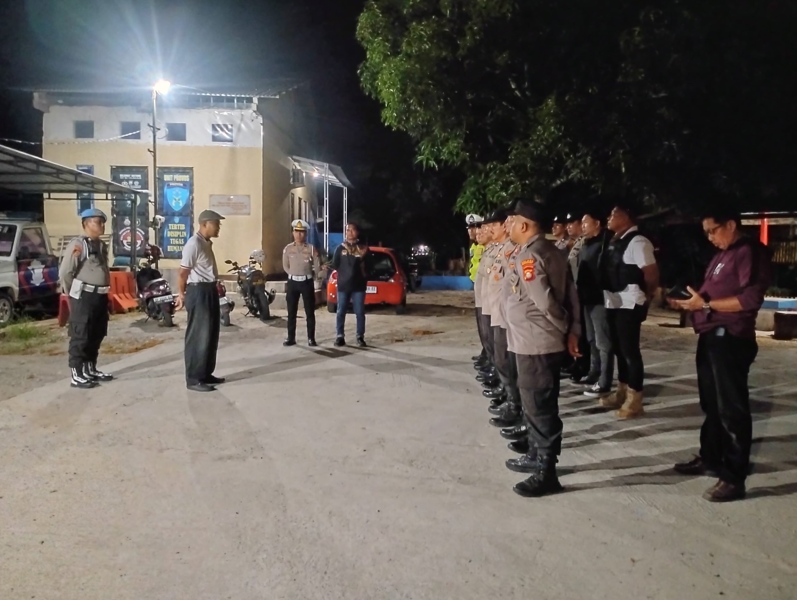 klivetvindonesia.com, Pangkep – Dalam rangka status siaga satu, personel Polsek Bungoro yang dipimpin oleh Panit 1 Intelkam Polsek Bungoro IPDA Muh.Tang melaksanakan apel malam pengecekan personel di lapangan apel Mapolsek Bungoro pada Senin malam (01/09/25).
