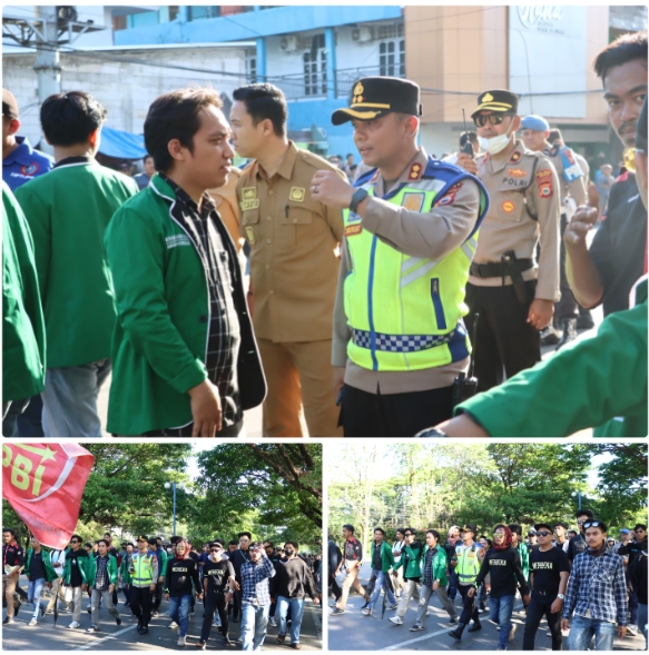Polri Untuk Masyarakat, Kapolres Maros Kawal Aspirasi Aliansi Masyarakat Maros dengan Berjalan Kaki Lima Kilometer Bersama Massa Unras