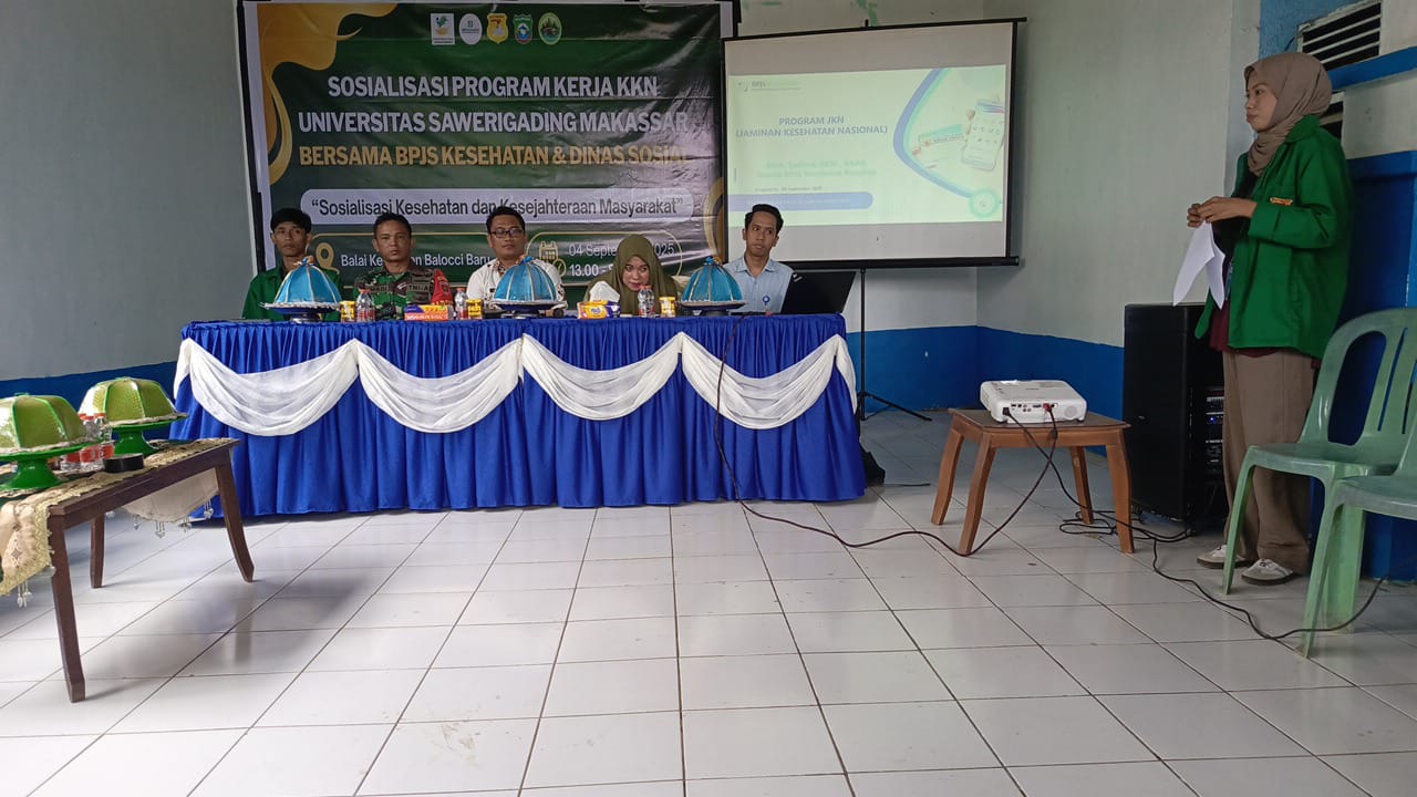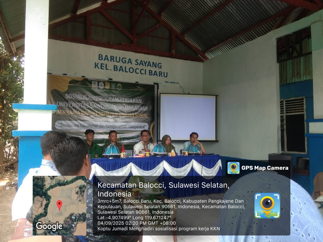 klivetvindonesia.com,Pangkep – Kamis, 04 September 2025 Koptu Jumadi selaku Babinsa Kelurahan Balocci Baru menghadiri kegiatan Sosialisasi Program Kerja Kuliah Kerja Nyata (KKN) Universitas Sawerigading Makassar yang dilaksanakan bersama BPJS Kesehatan dan Dinas Sosial. Kegiatan ini mengangkat tema sosialisasi kesehatan dan kesejahteraan masyarakat, bertempat di Aula Kelurahan Balocci Baru, Kecamatan Balocci, Kabupaten Pangkep.
