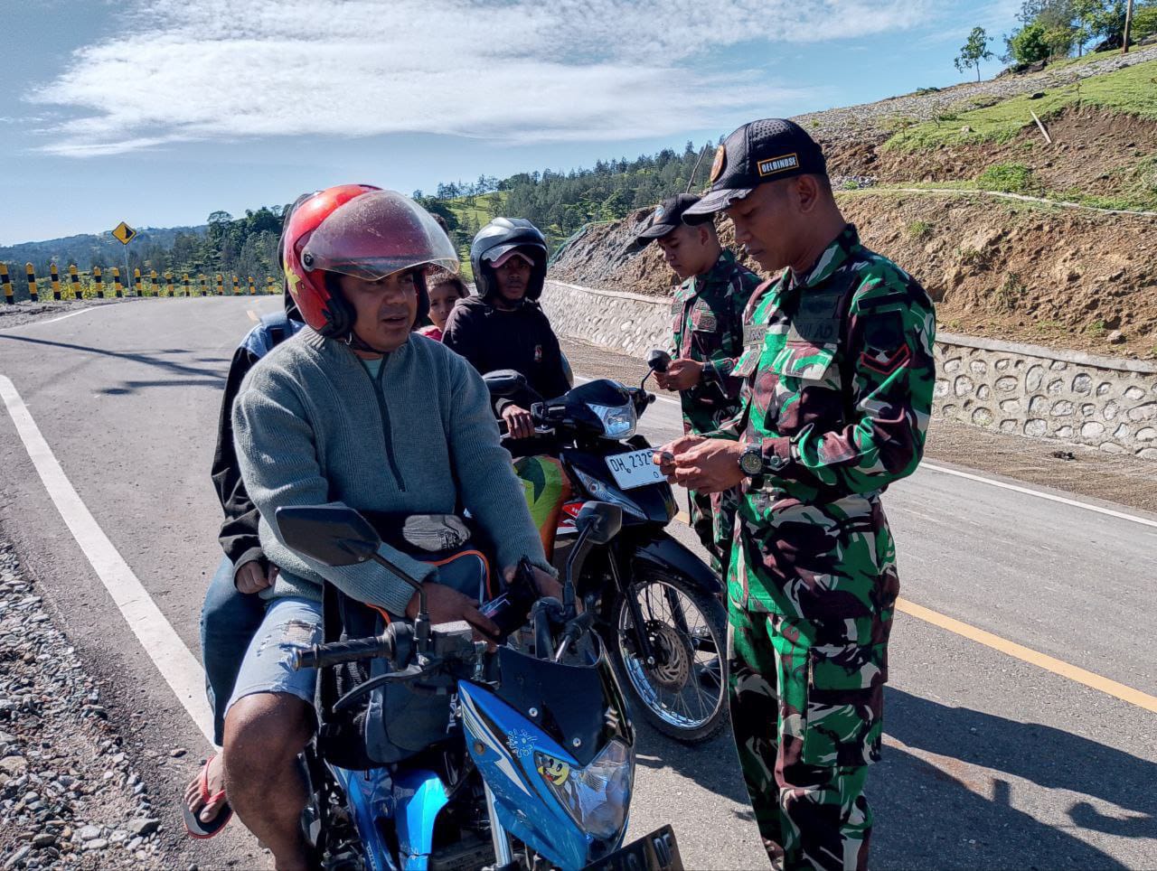 TTU -KLTV INDONESIA.COM- Satgas Pamtas RI – RDTL sektor barat yonarhanud 15/DBY selasa 2 September 2025, personel Pos Oelbinose dipimpin Danru Pos Oelbinose Serda Akhlish beserta tiga orang anggota melaksanakan Giat Sweeping Di Jalan Desa Oelbinose, DesaTasinifu, Kecamatan Mutis, Kabupaten TTU.