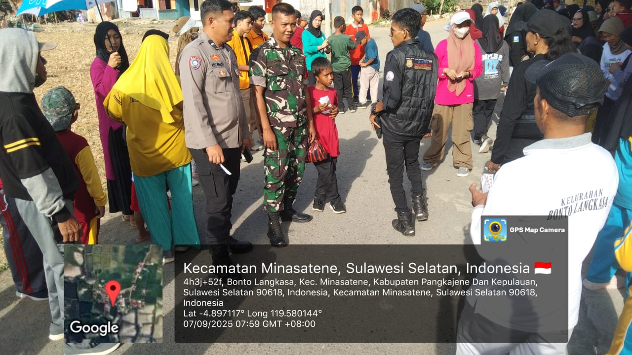 Babinsa Kelurahan Bonto Langkasa, Sertu Kasruddin, hadir langsung melakukan pemantauan jalannya kegiatan sekaligus memastikan situasi tetap aman dan kondusif. Menurutnya, jalan santai ini bukan hanya menjadi ajang olahraga bersama, tetapi juga menjadi sarana mempererat hubungan silaturahmi antarwarga serta menumbuhkan rasa persatuan dan nasionalisme.