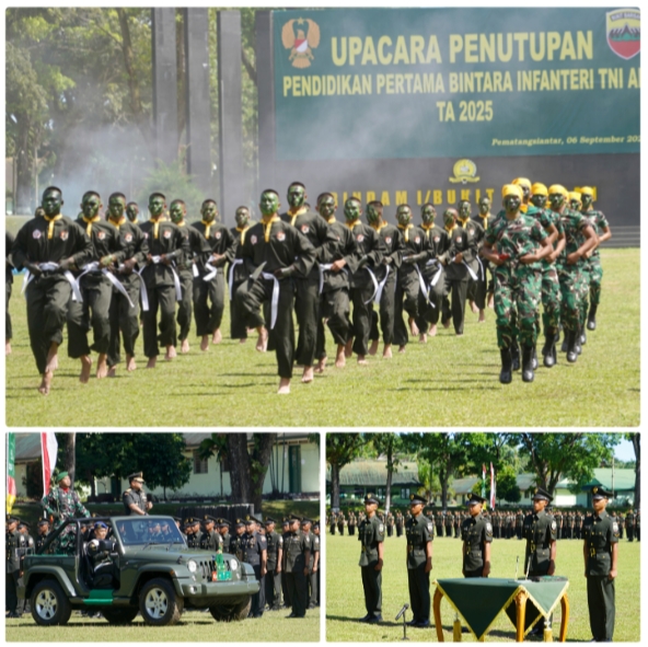 –klivetvindonesia.com– Pematangsiantar – Pangdam I/Bukit Barisan Mayjen TNI Rio Firdianto pimpin upacara penutupan Pendidikan Pertama Bintara (Dikmaba) Infanteri TNI AD tahun anggaran 2025 di Lapangan Jenderal Sudirman, Rindam I/BB, Pematangsiantar, Sabtu (6/9/2025).