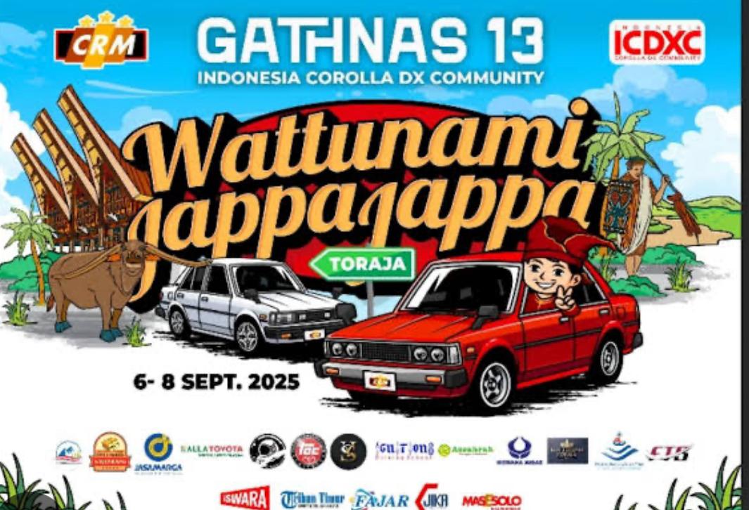 klivetvindonesia.com,Makassar – Suasana penuh kebersamaan dan semangat persaudaraan mewarnai kegiatan Gathering Nasional (Gathnas) ke-13 Indonesia Corolla DX Community (ICDXC) yang digelar oleh Corolla Retro Makassar (CRM) selaku panitia pelaksana wilayah koordinasi Indonesia Timur. Acara yang berlangsung pada 6–8 September 2025 ini mengusung tema “Wattunami Jappa-Jappa” dan menjadi ajang silaturahmi akbar pecinta Corolla DX dari berbagai penjuru tanah air.