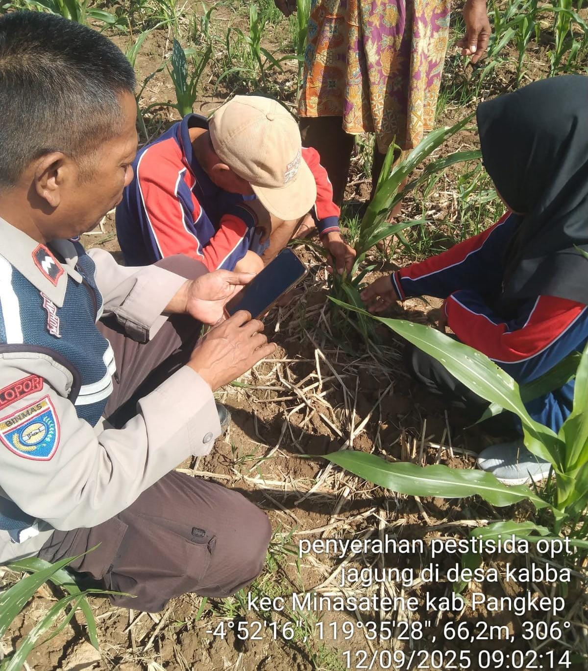klivetvindonesia.com,PANGKEP, – Bhabinkamtibmas Desa Kabba Polsek Minasatene polres Pangkep Aipda Muhammading mendampingi tim penyuluh hama jagung kecamatan minasatene ibu Saenab untuk mendukung program ketahanan pangan dan kesejahteraan petani, serta memastikan tanaman jagung tumbuh sehat dan bebas hama di kp. Galung boko desa kabba kecamatan Minasatene kabupaten PANGKEP Jum’at (13/09/2025) pagi.