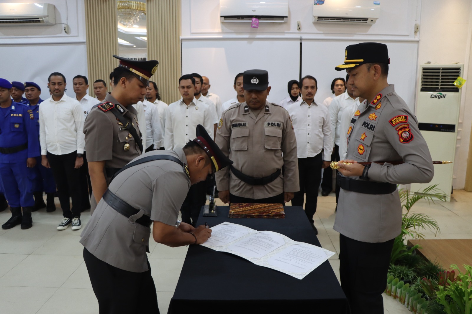klivetvindonesia.com., Ketapang, Polda Kalbar – Kapolres Ketapang, AKBP Muhammad Harris, S.H., S.I.K., M.I.K., CPHR., memimpin upacara serah terima jabatan (sertijab) Kasat Samapta, Kasat Intelkam, Kapolsek Matan Hilir Selatan dan Kapolsek Jelai Hulu. Upacara sertijab tersebut digelar di Aula Mapolres Ketapang di Jalan Brigjend Katamso Nomor 01 Ketapang, Kamis pagi (11/09/2025).