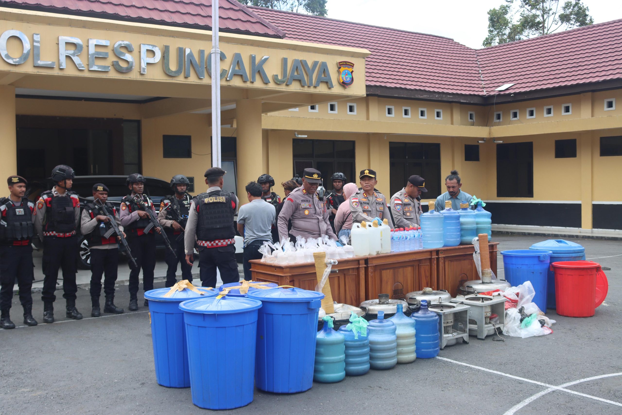 PUNCAK JAYA – KLTV INDONESIA – klivetvindonesia.com– Upaya Polres Puncak Jaya dalam memberantas peredaran minuman keras (miras) oplosan kembali membuahkan hasil. Sebanyak 750 liter miras oplosan, baik yang siap edar maupun masih berupa bahan baku, berhasil diamankan dari tiga tersangka berbeda.