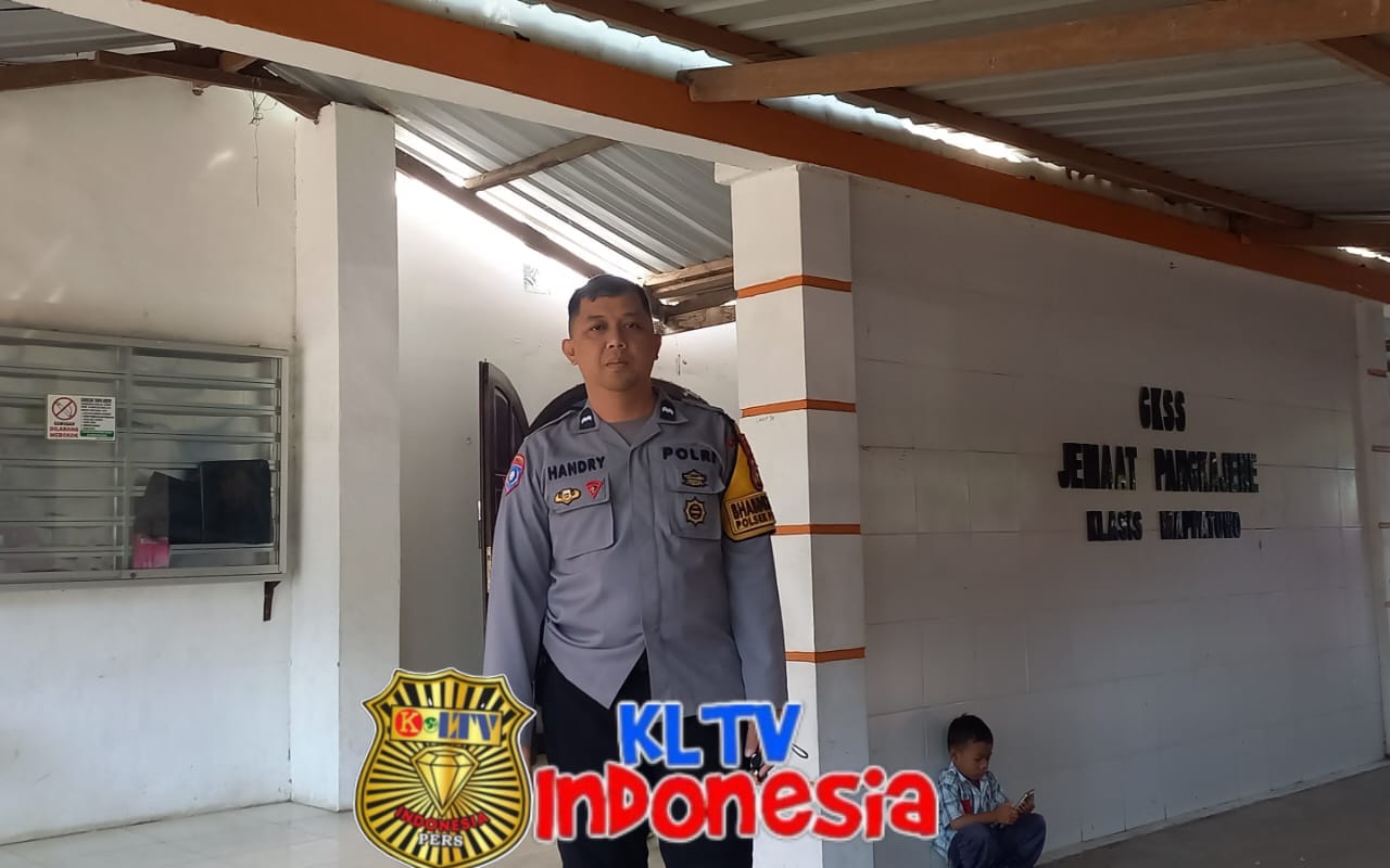 klivetvindonesia.com,Pangkajene – Bhabinkamtibmas Polsek Pangkajene aupda Handri Nurcahyo melaksanakan giat pengamanan ibadah dengan memberikan pengamanan gereja di GKSS Mappatuwo, Kec. Pangkajene Kab. Pangkep, Minggu (21/09/2025)