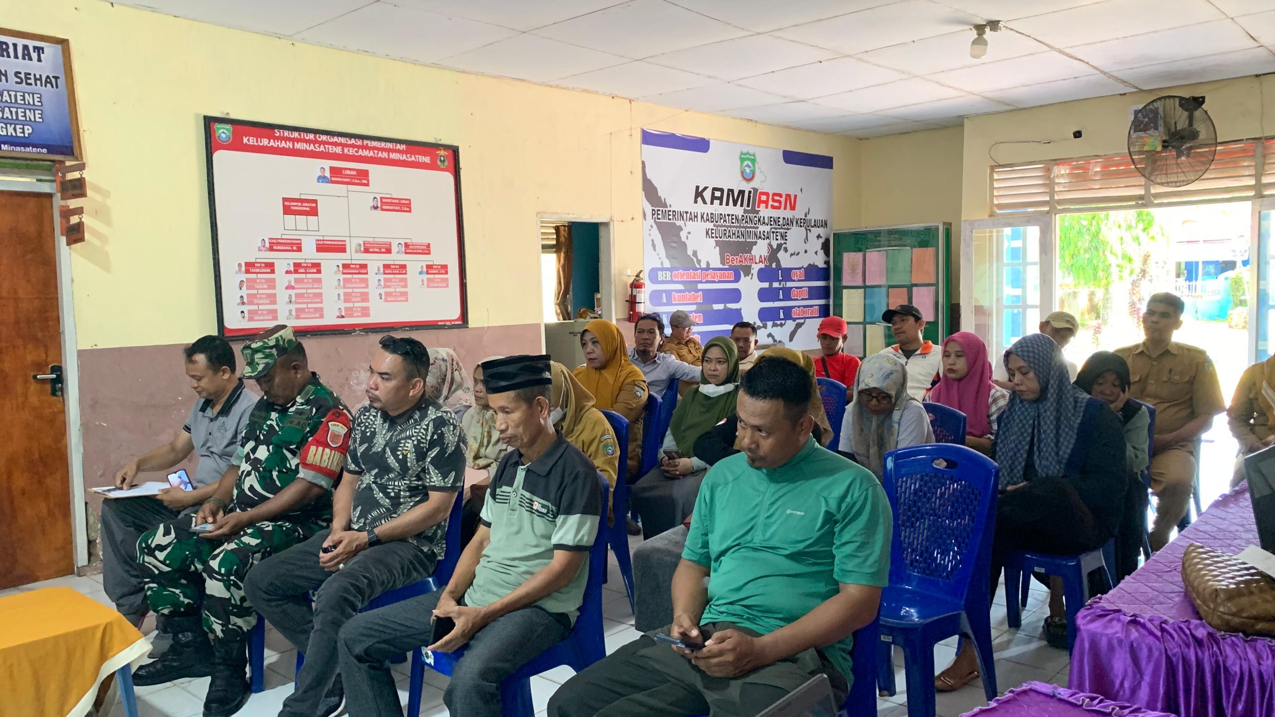 PANGKEP-KLTV INDONESIA klivetvindonesia.com,Minasatene, Pangkep – Upaya pencegahan penyakit menular terus dilakukan pemerintah bersama instansi terkait. Pada Selasa (23/09/2025) pukul 09.30 Wita, Lurah Minasatene, Adnan Hary, S.Sos., MM, menghadiri sekaligus mendukung penuh kegiatan sosialisasi penyuluhan penyakit Tuberkulosis (TBC) yang digelar di Aula Kantor Kelurahan Minasatene, Kecamatan Minasatene, Kabupaten Pangkep.