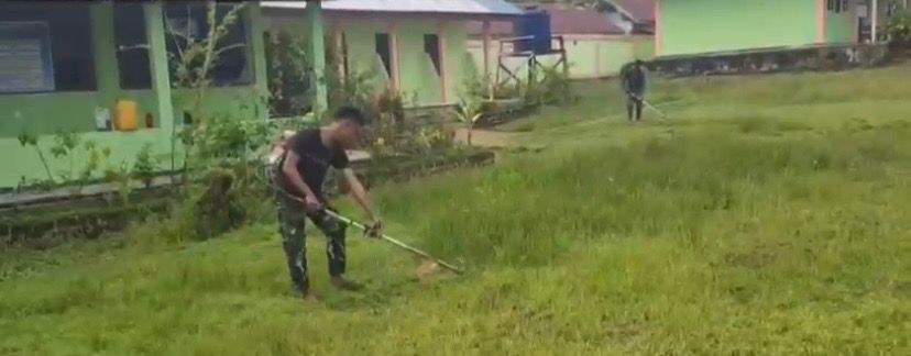 Tambrauw – KLTV INDONESIA.COM Pos Satgas TNI Bamusbama bersama masyarakat kembali melaksanakan kegiatan sosial di wilayah binaannya. Kali ini, para prajurit bersama warga bergotong royong membersihkan rumput yang telah panjang di SD Negeri 82 Bamusbama, sebuah sekolah terpencil yang menjadi tempat belajar anak-anak di distrik Bamusbama, Kabupaten Tambrauw, Papua Barat Daya. (23/9/2025).