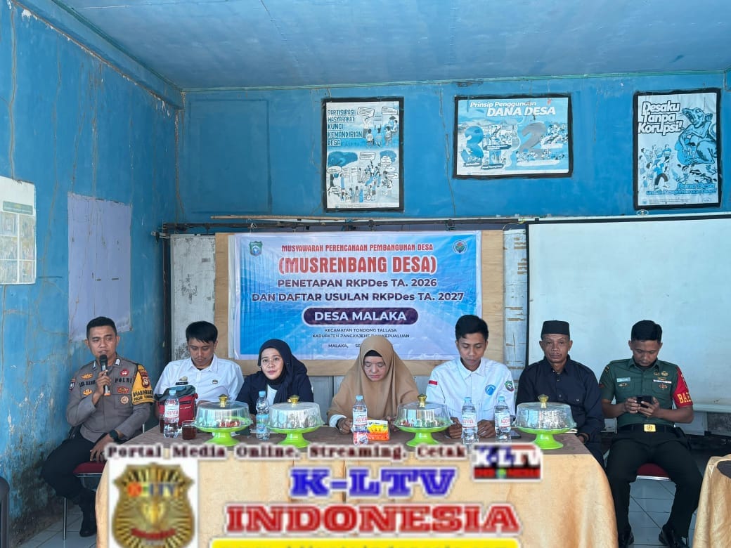 klivetvindonesia.com,TONDONG TALLASA – Bhabinkamtibmas Desa Malaka Polsek Tondong Tallasa Polres Pangkep Bripka Abd.Kadir,S.Psi.,M.M. menghadiri Musyawarah Perencanaan Pembangunan Desa (Musrenbang Desa) tingkat Desa Malaka dalam rangka Penetapan Rencana Kerja Pemerintah Desa (RKPDes) Tahun Anggaran 2026 sekaligus penetapan Daftar Usulan RKP Tahun Anggaran 2027 yang dilaksanakan di Baruga Kantor Desa Malaka,Kec.Tondong Tallasa.