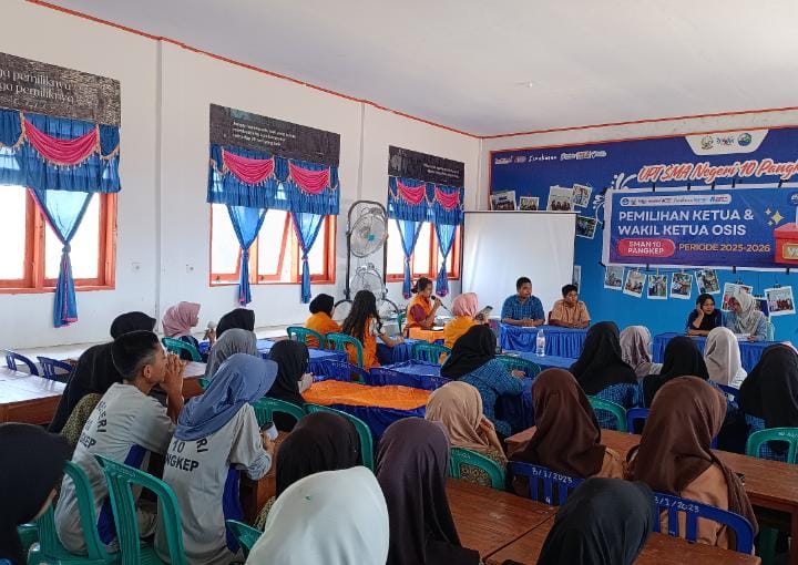klivetvindonesia.com,Labakkang, 25 September 2025 — Aula SMAN 10 Pangkep sore itu dipenuhi antusiasme siswa dan guru yang turut menyaksikan jalannya debat kandidat Calon Ketua dan Wakil Ketua OSIS periode 2025–2026. Acara yang digelar pada Kamis (25/09/2025) ini menjadi momentum penting bagi sekolah untuk menanamkan budaya demokrasi sekaligus memberikan ruang bagi para siswa untuk menunjukkan kualitas kepemimpinannya.