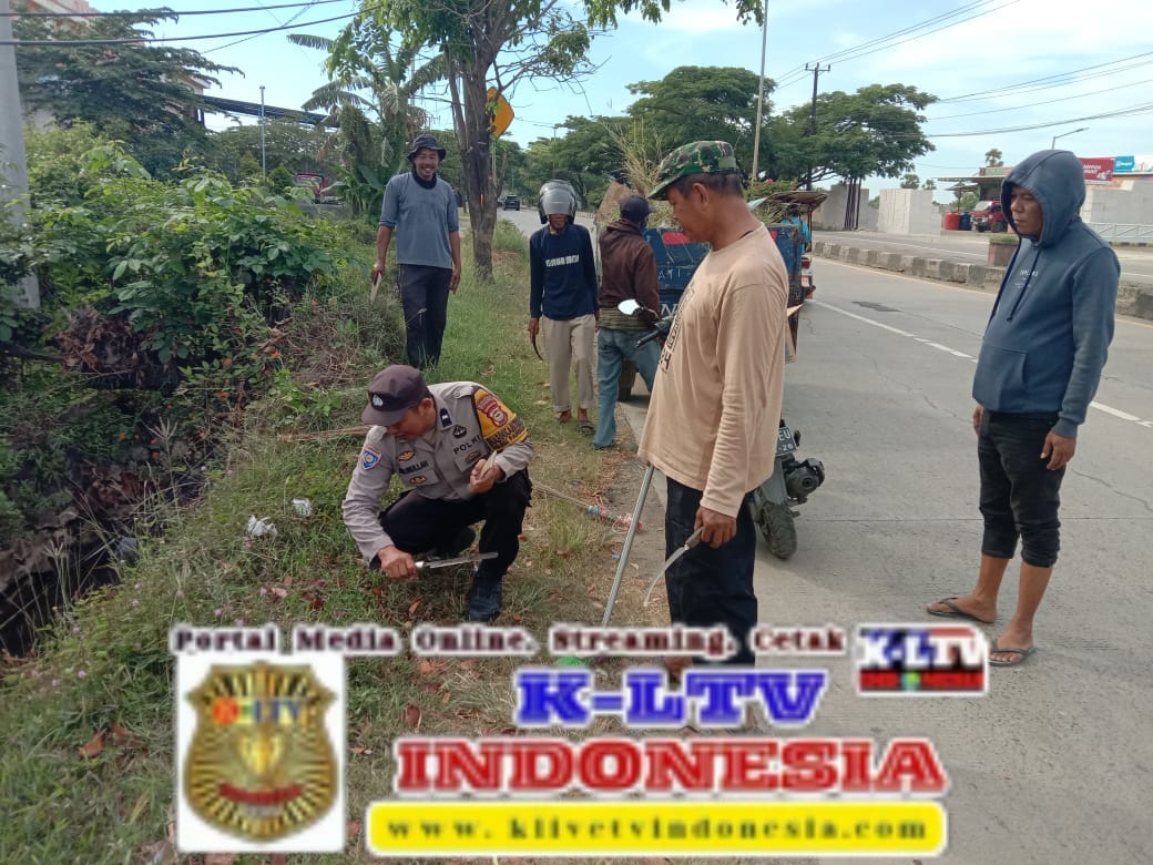 klivetvindonesia.com,Pangkajene_ Bhabinkamtibmas Aipda Amirullah bersama pemerintah, masyarakat dan Mahasiswa KKN UNM melaksanakan kerja bakti bersama di Kp. Maleleng Kelurahan Sibatua Kecamatan Pangkajene Kabupaten Pangkep, Jumat 26-09-2025.