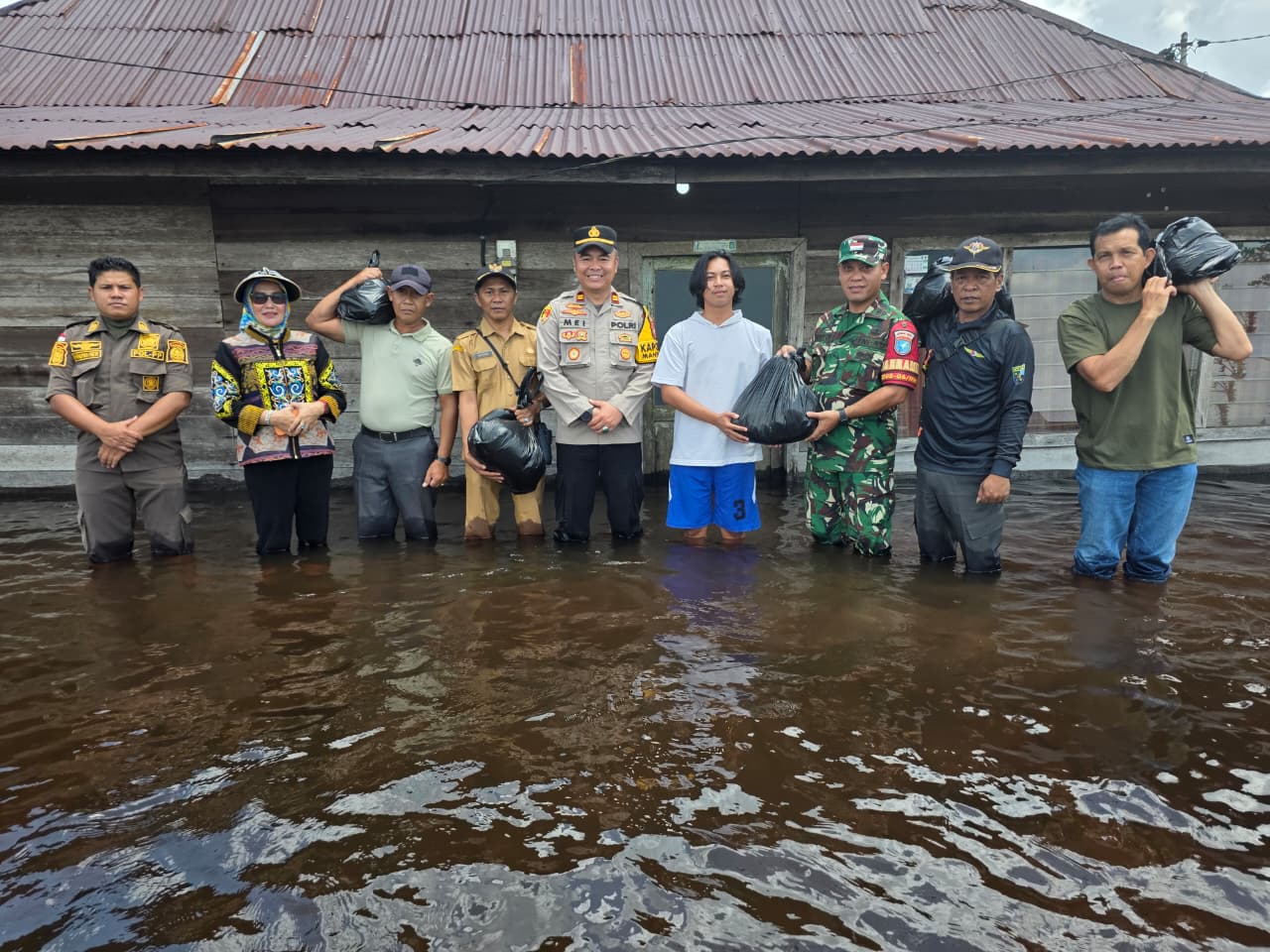 Kapolsek Manis Mata IPTU Meinardus beserta personel turun langsung ke lapangan untuk memastikan kondisi debit air tetap terpantau serta melakukan koordinasi dengan aparatur desa. Selain itu, sebagai bentuk kepedulian sosial, pihak kepolisian menyalurkan bantuan berupa kebutuhan pokok kepada warga yang terdampak banjir, dengan harapan dapat meringankan beban masyarakat.